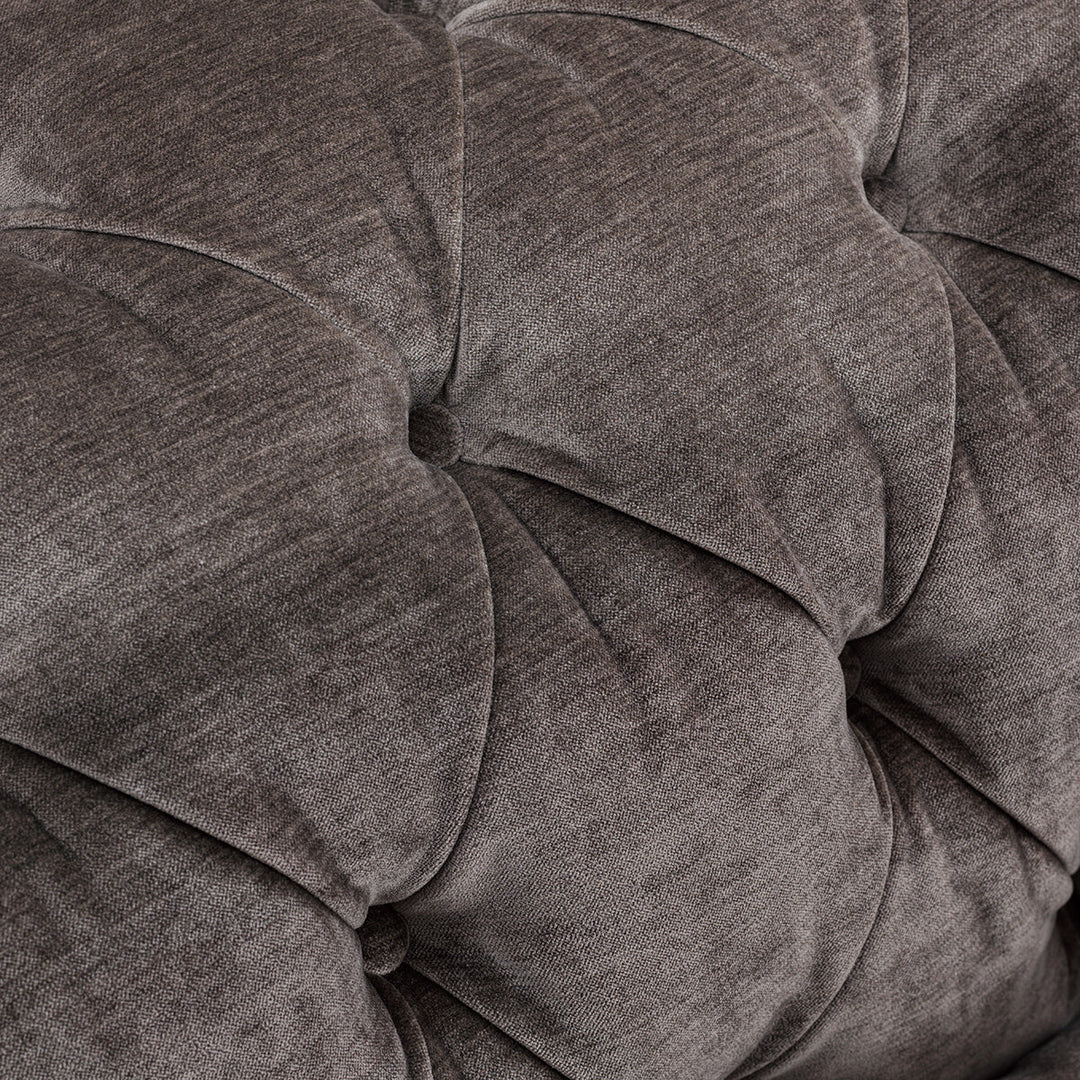 With its hand-tied buttoning on the back and arms, is handmade by skilled craftsmen. With a kiln-dried, solid wood frame, each sofa is covered in a soft yet durable fabric.