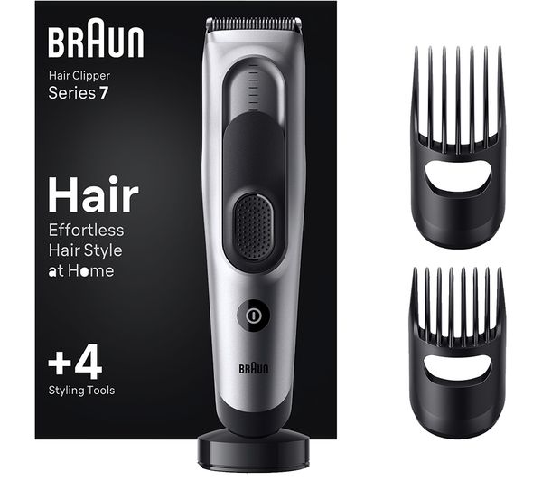 BRAUN Series 7 BRAHC7390 Hair Clipper - Grey, Cordless, Water washable, 17 positions, Memory Lock, 2 attachments, 2 year guarantee