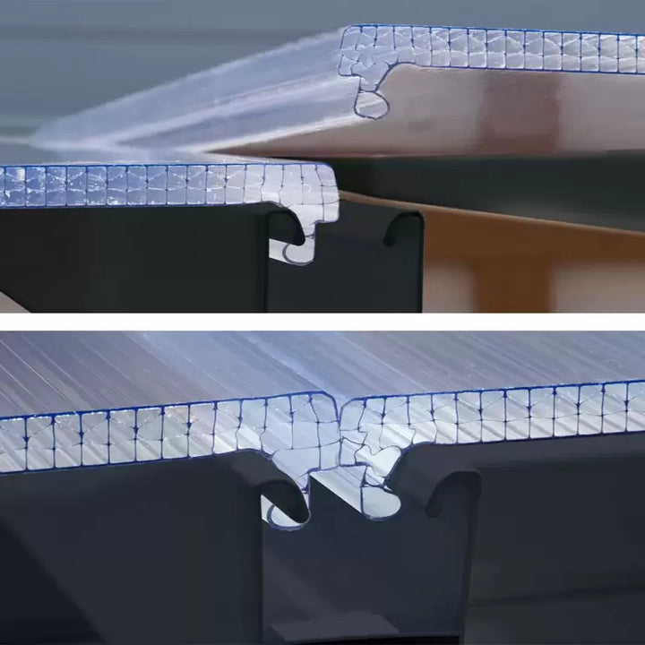 - 8mm multiwall polycarbonate roof panels offer high impact, shatter-resistance and protection from harmful UV rays and harsh weather conditions.
