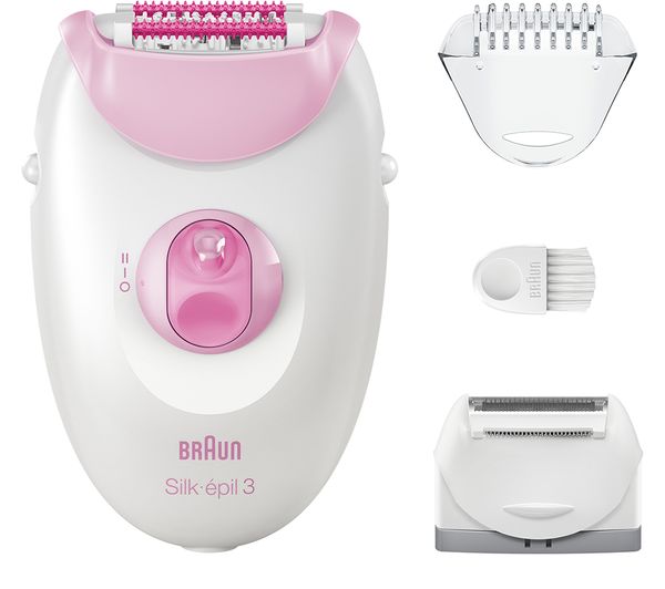 BRAUN Silk-épil Series 3 3-031 Epilator - White & Pink, Power: Mains, Suitable for body & bikini, 2 speeds, Water washable, 2 year guarantee