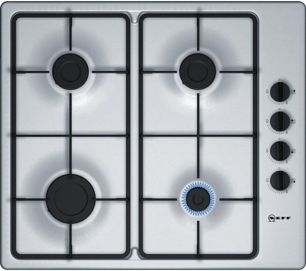 NEFF N30 T26BR46N0 58 cm Gas Hob - Stainless Steel, 4.3 x 58 x 51 cm (H x W x D), 4 burners, Cast-iron pan supports, Automatic ignition, Side-mounted controls, 2 year guarantee