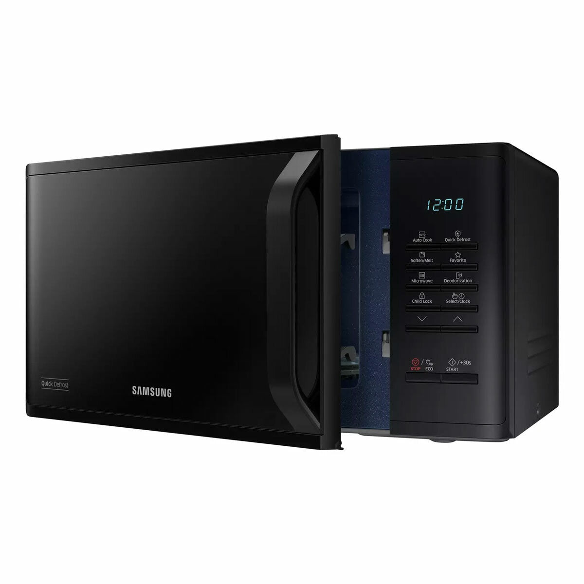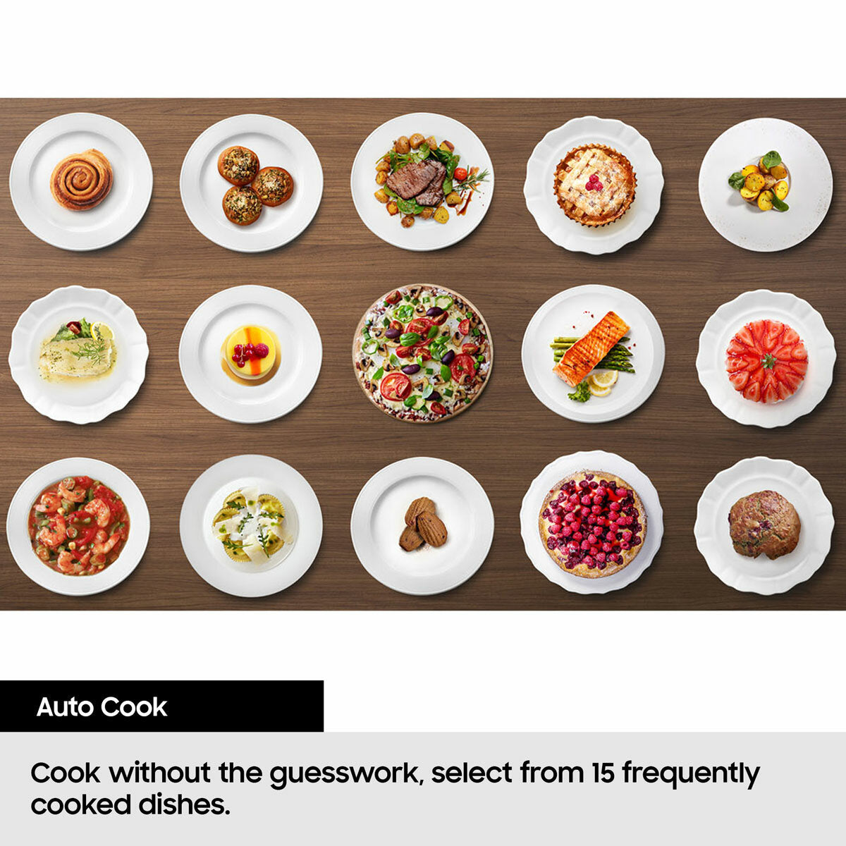 Minimum effort, maximum taste. Make sure that everything you cook is properly prepared. With a handy 23L capacity, this microwave from Samsung ensures evenly cooked food every time. Triple Distribution System Make sure that everything you cook is properly prepared. The Triple Distribution System distributes microwaves in 3 directions, so they reach into every corner to ensure that everything is cooked thoroughly and evenly. Auto Cook Cook delicious dishes without guesswork. Auto Cook has a choice of options for 15 frequently cooked dishes. Each is pre-programmed with the appropriate mode, time and temperature. Simply select the type and weight of food and follow the instructions. Eco Mode Home appliances that stay powered on every day waste energy without you noticing. The Standby Mode turns off the microwave oven’s display and uses the minimum power to keep it ready to use. Ceramic Enamel Interior No one likes a messy microwave or oven. Our Ceramic enamel interior makes grease and oil super easy to clean with a quick wipe, then you’re good to go.