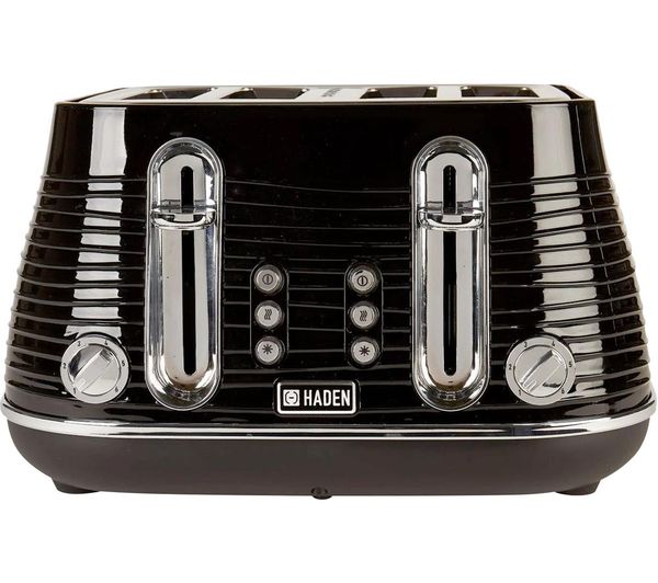 HADEN Devon 204448 4-Slice Toaster - Black, Defrost function, Reheat function, Extra-wide slots, 2 year guarantee