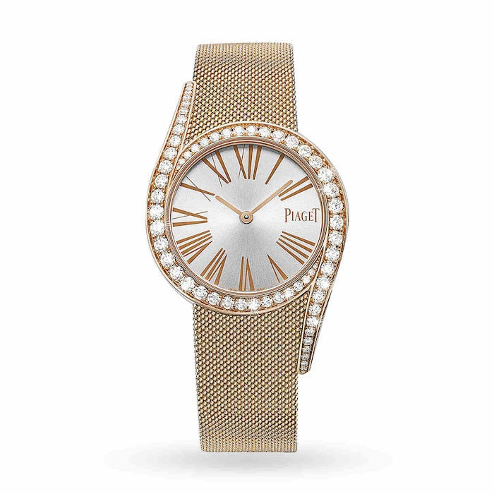 Founded in 1874 by Georges Edouard Piaget, Piaget is dedicated to desigining and producing high-precision timepieces. Georges Edouard Piaget began his work on the family farm, located in the small village of La Côte-aux-Fées in the Swiss Jura mountains. Piaget develops its watch movements in-house, and has done so since 1874.This Piaget ladies' timepiece from the Limelight collection showcases an elegant 32 mm 18ct rose gold case and 18ct white gold bracelet. The watch is powered by a quartz movement. This model is set with Roman numeral hour markers, a smooth set bezel, and sapphire crystal scratch-resistant glass for additional protection.Explore the fullPiaget collection.
