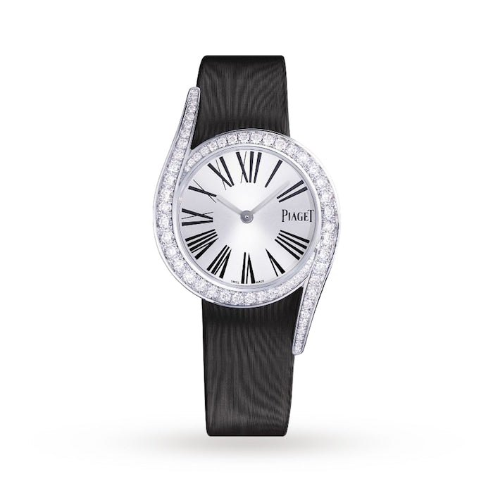 Founded in 1874 by Georges Edouard Piaget, Piaget is dedicated to desigining and producing high-precision timepieces. Georges Edouard Piaget began his work on the family farm, located in the small village of La Côte-aux-Fées in the Swiss Jura mountains. Piaget develops its watch movements in-house, and has done so since 1874.This Piaget ladies' timepiece from the Limelight collection showcases an elegant 26 mm 18ct white gold case and satin bracelet. The watch is powered by a quartz movement. This model is set with Roman numeral hour markers, a smooth set bezel, and sapphire crystal scratch-resistant glass for additional protection.Explore the fullPiaget collection.