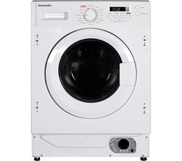 MONTPELLIER MIWD8614 Integrated 8 kg Washer Dryer, 85 x 59.5 x 47.5 cm (H x W x D), Wash capacity: 8 kg / Drying capacity: 6 kg, Spin speed: 1400 rpm, Wash & dry energy rating: E / Wash energy rating: B, Add missed items during the cycle, 2 year guarantee
