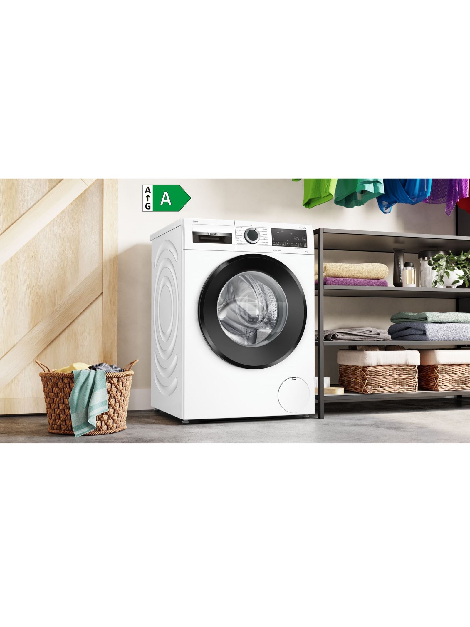 You've never wished for more laundry. Then again, it's never been this easy. Bosch's loaded this washing machine with clever tech to make cleaning a doddle. Furry friend left pawprints on your go-to work shirt? No drama – it’ll wash a full load in just 15 minutes, with load sensors ensuring you're using less water but still removing the evidence of last night’s madras mishap. It also uses a frictionless motor instead of noisy brushes, meaning it'll run super smoothly and won't disturb you; great for open-plan living. Plus, with its A-rated energy performance, it's kinder to the environment and your energy bills.