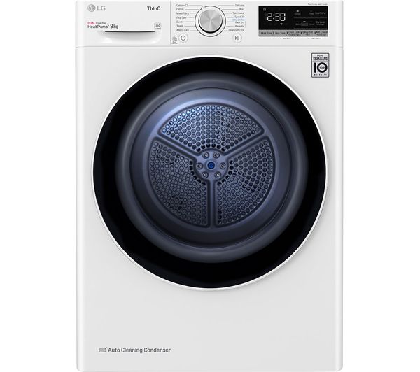 Control your laundry from your phone with the LGÂ V7 FDV709W WiFi-enabled 9 kg Heat Pump Tumble Dryer. Download the LG ThinQ app to try specialist cycles, track your washing or monitor the energy usage.