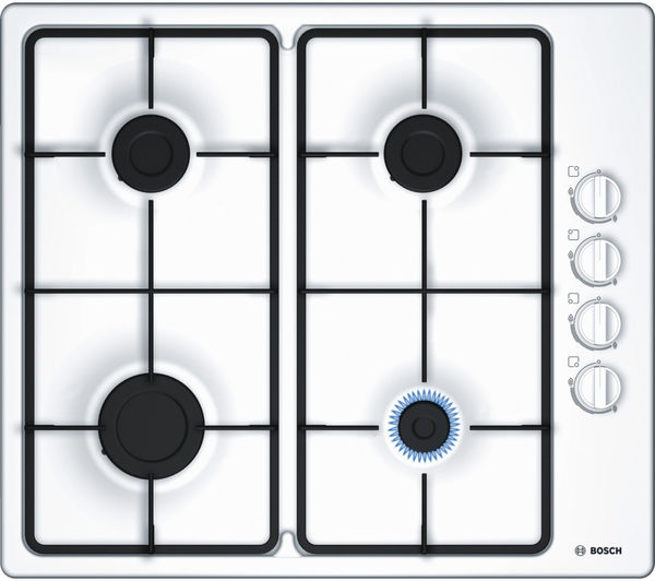 BOSCH Series 2 PBP6B2B60 58 cm Gas Hob - White, 4.3 x 58 x 51 cm (H x W x D), 4 burners, Cast-iron pan supports, Automatic ignition, Side-mounted controls, 2 year guarantee