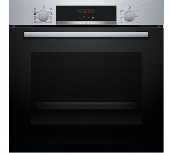 BOSCH Series 4 HQA574BS3B Electric Pyrolytic Steam Oven - Stainless Steel, Capacity: 71 litres, Pyrolytic cleaning, Oven type: Conventional, Hot air cooking for even heat & no flavour transfer, Steam cooking helps retain nutrients, 5 year guarantee