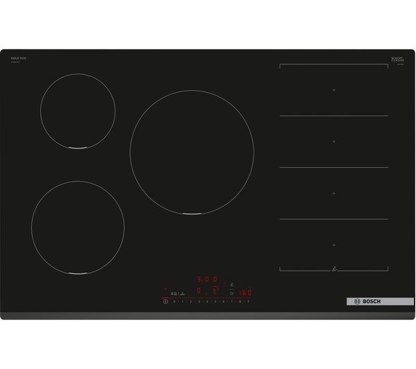 BOSCH Series 6 PXV831HC1E 80 cm Electric Induction Hob - Black, 5.1 x 80.2 x 52.2 cm (H x W x D), 5 zones, Front-mounted touch controls, Boost function, Keep warm function, Timer, 2 year guarantee