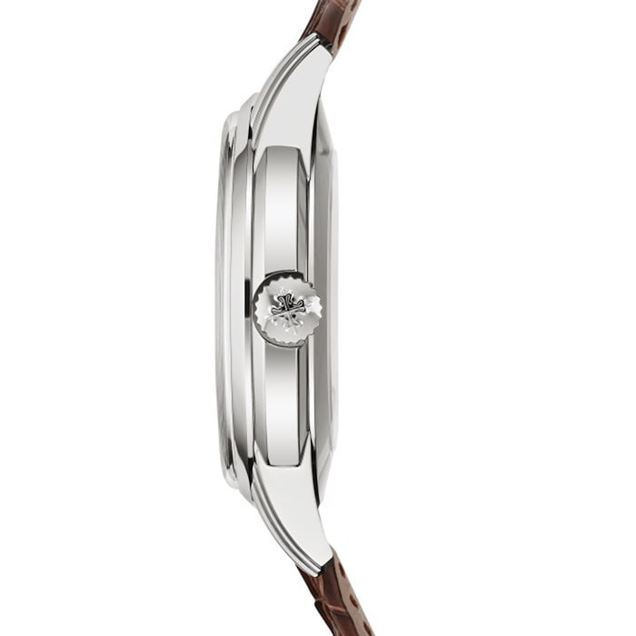 A paragon of visual balance and legibility, the perpetual calendar model bearing Reference 5320 was designed in 2017 in a white gold case with a cream-lacquered dial. Its vintage style is reinterpreted in a new white gold version fitted with a gilded opaline rose gold dial. The calendar displays are arranged in the characteristic manner of Patek Philippe perpetual calendar watches since 1941, with a twin in-line day/month aperture at 12 o’clock and a date indicated by a hand surrounding a moon-phase aperture at 6 o’clock. These are complemented by two round apertures: one for the day/night indication between 7 and 8 o’clock; and the other for the leap-year cycle between 4 and 5 o’clock — both of which are useful to adjust the calendar. The extremely accurate moon phases require a one-day correction only once every 122 years.