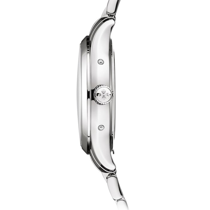 For the first time, Patek Philippe is offering the Annual Calendar in a round Calatrava-type polished steel case with a 38mm diameter that suits all wrists. This watch is equipped with a new integrated and entirely polished bracelet featuring five rows of links. The shimmering reflections of the steel frame an elegant midnight blue dial enhanced by a double vertical and horizontal satin finish. Patek Philippe’s patented Annual Calendar requires only one correction per year.