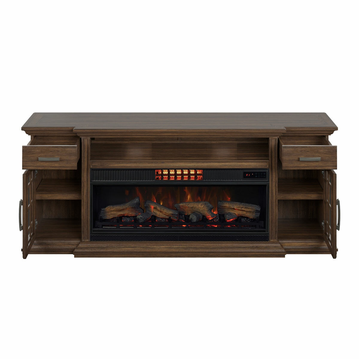 For a look that blends a warm Prairie Brown finishes with windowpane cabinet doors the Everett TV Console creates a sophisticated, yet welcoming atmosphere to your living space all year round. CoolGlow flame effect paired with the 2-in-1 heater and fan, this media mantel delivers year-round temperature control. The warmth of the infrared quartz electric fireplace keeps you cosy in the winter while the cool breeze of an oscillating fan is there for the summer when you need it most.