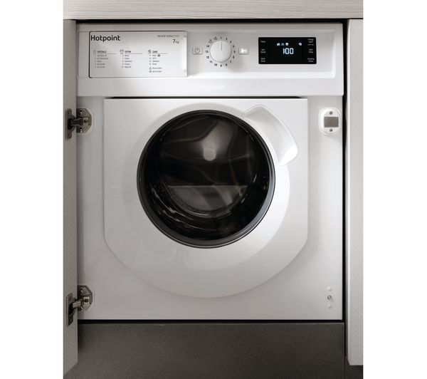 HOTPOINT BI WMHG 71483 UK N Integrated 7 kg 1400 Spin Washing Machine, 82 x 60 x 55 cm (H x W x D), Capacity: 7 kg, Spin speed: 1400 rpm, Quick wash time: 30 minutes for 3.5 kg, Energy rating: D, Stain removal makes sure your clothes look their best