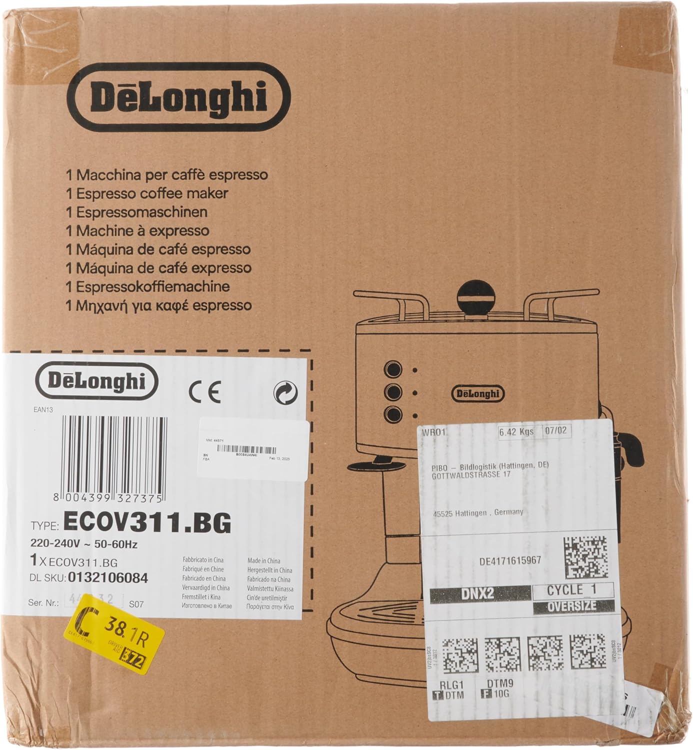 De'Longhi Vintage Icona Traditional Barista Pump Espresso Machine, Coffee and Cappuccino Maker, ECOV311BG, 1.4 liters, Cream