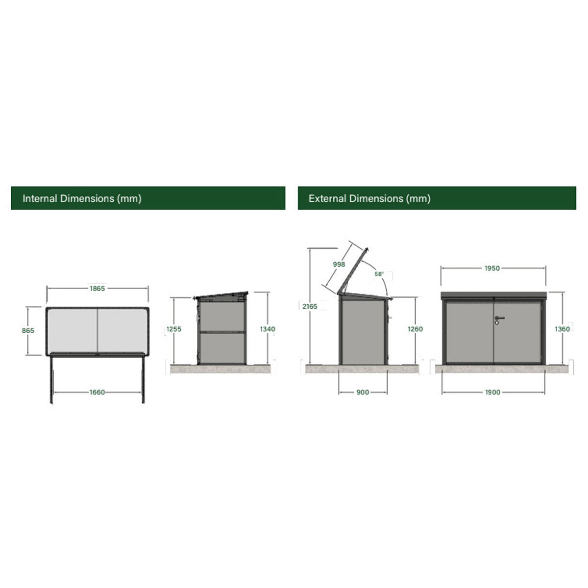 Durable, and spacious, this 2,018 litre Stone Garden shed is the answer when you need a lot of storage but don't have a lot of space. The large Horizontal storage shed with outward opening double doors and hinged lid with gas struts for easy opening. Suitable for storing bikes, wheelie bins (2 x 360 litre or 3 x 240 litre) or an array of other household items, concealing clutter and securing valuables completely away from view.