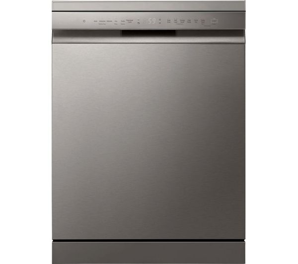 LG QuadWash DF355FP Full-Size WiFi-enabled Dishwasher - Platinum Silver, 85 x 60 x 60 cm (H x W x D), Ideal for medium-sized households (14 place settings), Energy rating: C, Quick wash: 38 minutes, Manage your machine on the app, 2 year guarantee