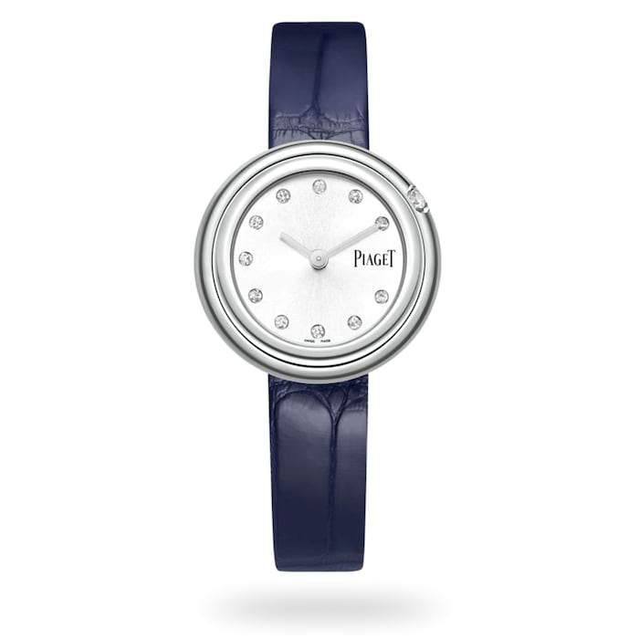 Founded in 1874 by Georges Edouard Piaget, Piaget is dedicated to desigining and producing high-precision timepieces. Georges Edouard Piaget began his work on the family farm, located in the small village of La Côte-aux-Fées in the Swiss Jura mountains. Piaget develops its watch movements in-house, and has done so since 1874.This Piaget ladies' timepiece from the Possession collection showcases an elegant 29 mm stainless steel case and alligator bracelet. The watch is powered by a quartz movement. This model is set with diamond hour markers, a smooth set bezel, and sapphire crystal scratch-resistant glass for additional protection.Explore the fullPiaget collection.