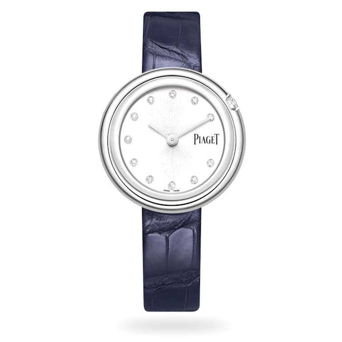 Founded in 1874 by Georges Edouard Piaget, Piaget is dedicated to desigining and producing high-precision timepieces. Georges Edouard Piaget began his work on the family farm, located in the small village of La Côte-aux-Fées in the Swiss Jura mountains. Piaget develops its watch movements in-house, and has done so since 1874.This Piaget ladies' timepiece from the Possession collection showcases an elegant 34 mm stainless steel case and alligator bracelet. The watch is powered by a quartz movement. This model is set with diamond hour markers, a smooth set bezel, and sapphire crystal scratch-resistant glass for additional protection.Explore the fullPiaget collection.