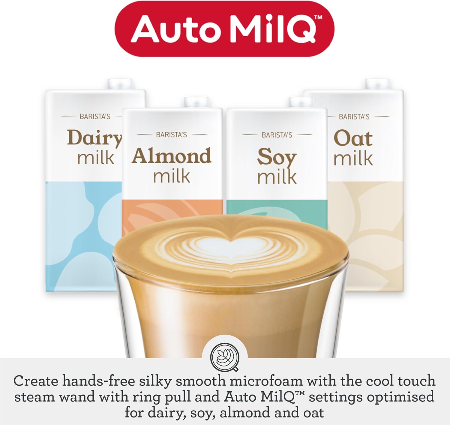• Custom Milk Texturing : Auto and manual adjustments for milk temperature and texture, achieving perfect microfoam for latte art