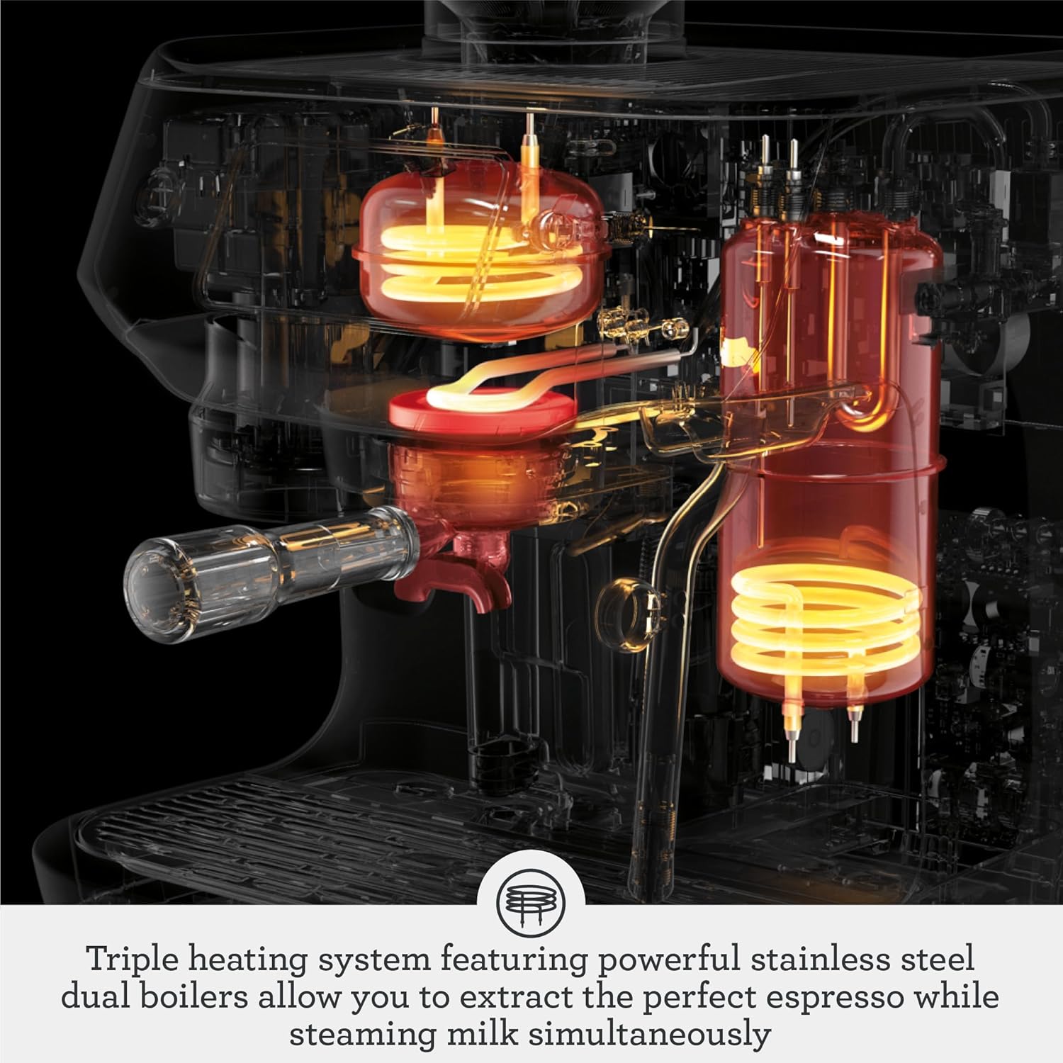 • Dual Boiler System : Simultaneous espresso extraction and milk steaming with PID temperature control for optimal flavour in less time