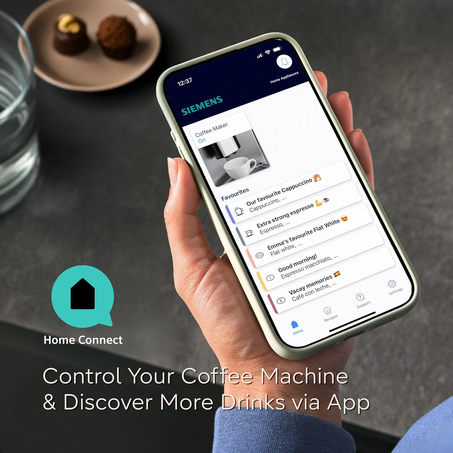 • SMART TECHNOLOGY: Operate your fully automatic espresso coffee machine from anywhere you choose with the innovative HomeConnect App. CoffeeWorld lets you explore new international flavours, recipes and tips or, if you’ve got a few friends over, you can even build a playlist of their requested drinks.