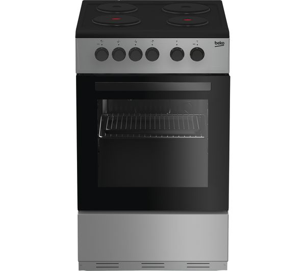 BEKO KS530S 50 cm Electric Solid Plate Cooker - Silver, 90 x 50 x 60 cm (H x W x D), One electric oven / Integrated electric grill, 4-zone electric solid plate hob, Main oven cleaning: Steam