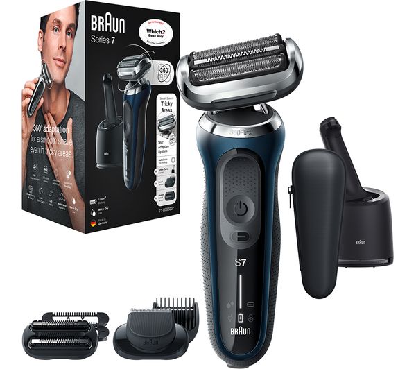 Braun's Series 7 Shavers have a neat trick - a 360° Flex Head. Three blades pivot in every direction to manoeuvre around tricky spots like your jawline – so you won't miss the faintest follicle. And, since the trimmer's 100% waterproof, you can get ultra-smooth, nick-free shaves by using it with foam or gel. In fact, you can even multi-task and use it in the shower. Best of all, when you're done, just pop it in the 4-in-1 SmartCare Centre. It'll intelligently clean, lubricate, and even charge your shaver. Magic.