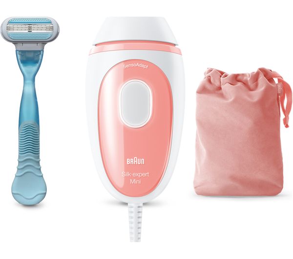 BRAUN Silk-expert Mini PL1014 IPL Hair Removal System - White & Pink, Intense pulsed light, Power: Mains, Suitable for face & body & bikini, 3 intensity levels, Includes storage pouch, 2 year guarantee
