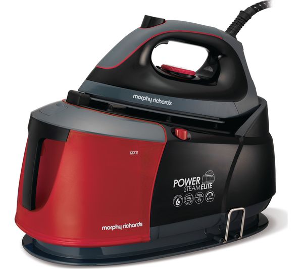 MORPHY RICHARDS Auto-Clean Power Steam Elite 332013 Steam Generator Iron - Black & Red, Power: 2400 W, Reservoir capacity: 2200 ml, 6.5 bar pressure, Steam output: 200 g/min with shot of steam, Anti-scale, 2 year guarantee, Ceramic soleplate