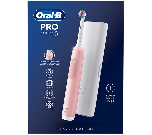 ORAL B Pro 3 3500 Electric Toothbrush - Pink, Battery life: Up to 2 weeks, Includes 1 brush head, 3 brushing modes, Pressure sensor, Timer function, 2 year guarantee