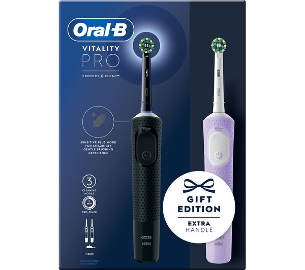TieDex UK ORAL B Vitality Pro Electric Toothbrush - Black & Purple Duo
