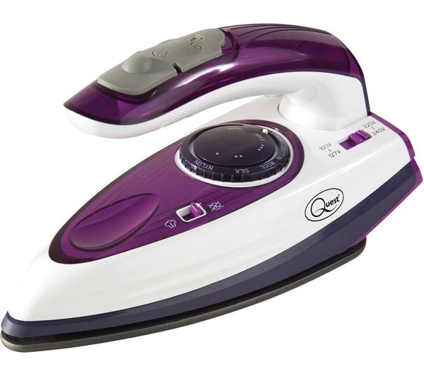 QUEST 34030 Travel Steam Iron - White & Purple, Power: 1000 W, Steam output: 15 g/min with shot of steam, Temperature control