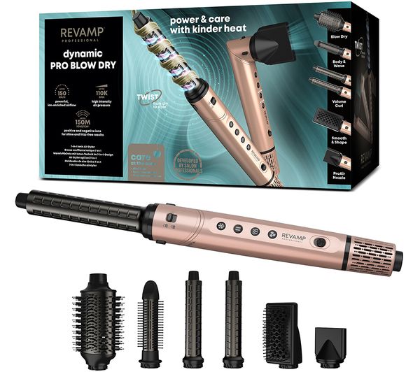 REVAMP Dynamic Radiance Pro Blow Dry DR-2850GD-GB 7-in-1 Ionic Air Styler - Gold, Power: 1400 W, 4 temperature settings, Maximum temperature: 100°C, 3 year guarantee