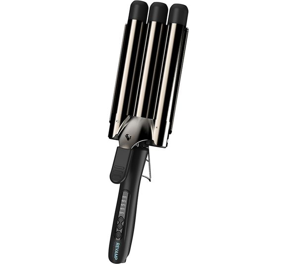 REVAMP Progloss Deep Beach Waver - Black, Power: 150 W, 5 temperature settings, Maximum temperature: 210°C, Heating time: 150 seconds, Automatic shut-off, 2 year guarantee