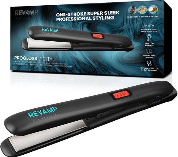 REVAMP Progloss Digital Ceramic Hair Straightener - Black, Power: 55 W, Variable temperature settings, Maximum temperature: 235°C, Automatic shut-off, Digital display, 3 year guarantee