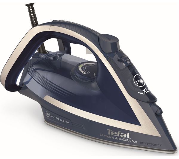 TEFAL Ultraglide Anti-Scale Plus FV5874G0 Steam Iron - Blue & Silver, Power: 2800 W, Reservoir capacity: 270 ml, Steam output: 50 g/min with shot of steam, Anti-scale, 2 year guarantee