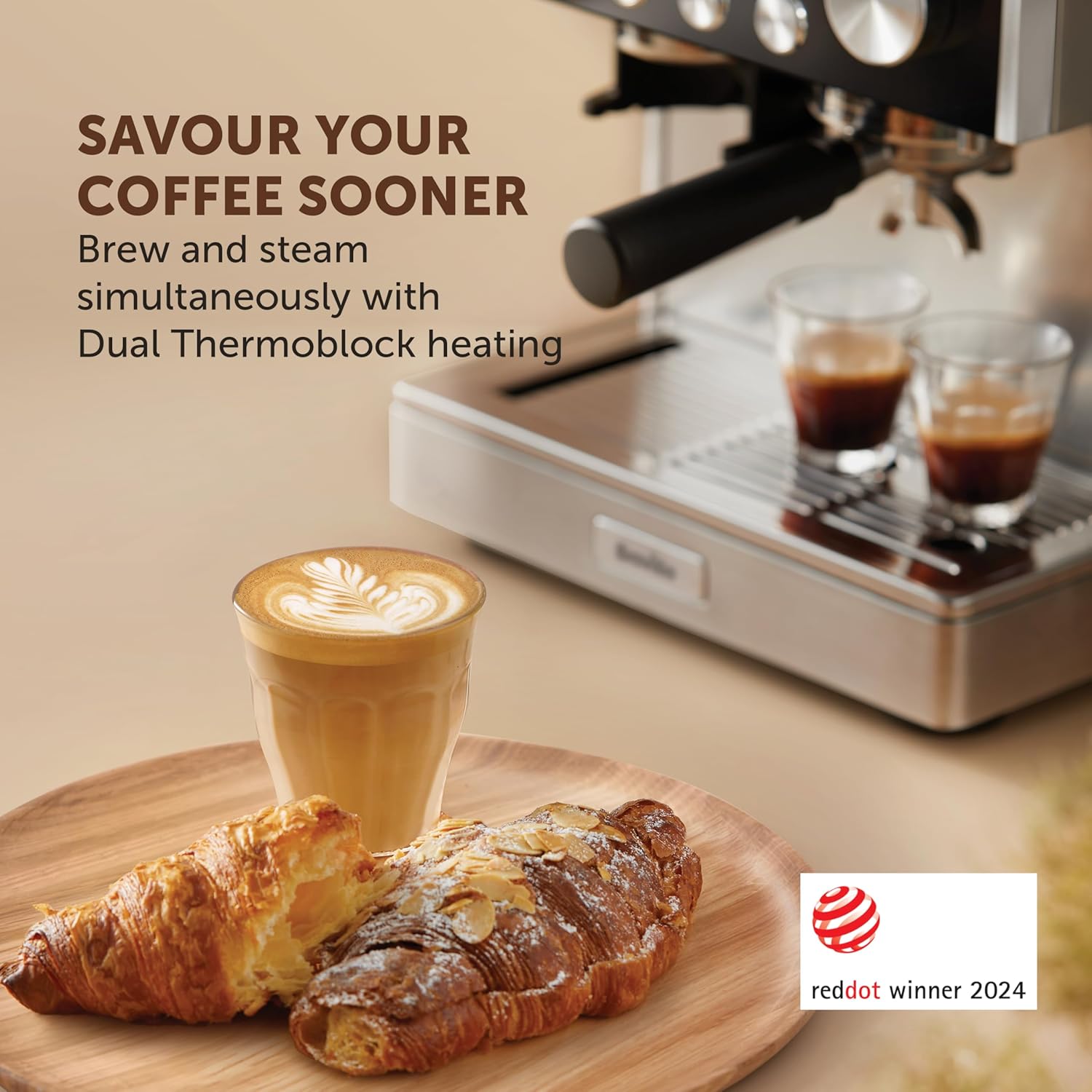 • SAVOUR YOUR COFFEE SOONER: Dual Thermoblock boiler allows for simultaneous brewing and steaming, so you can enjoy without the wait