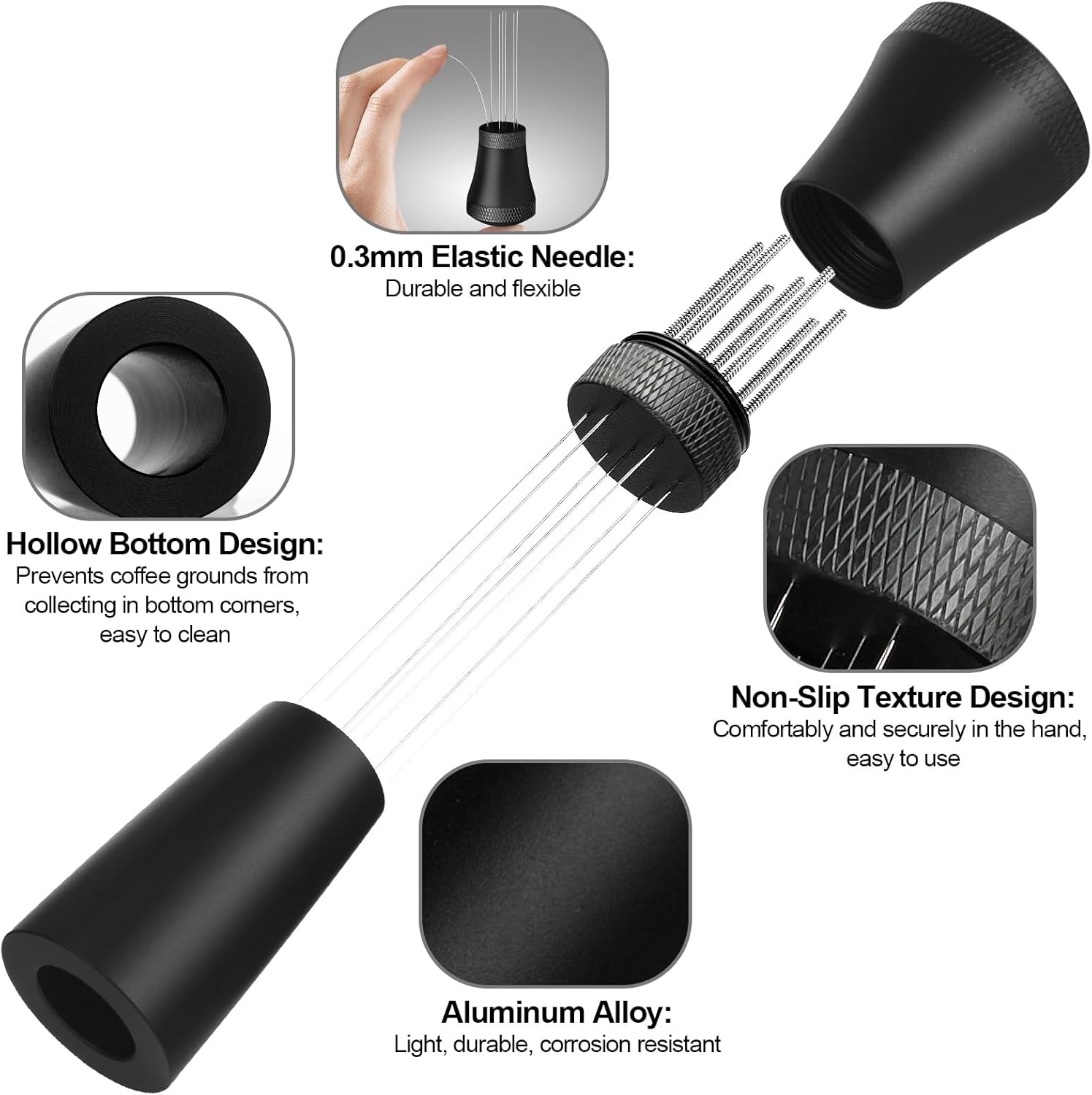 - MAKE EVEN MORE PERFECT COFFEE The Wdt tool can evenly penetrate and break and distribute the coffee powder by stirring, which perfectly improves the spraying problem and makes your coffee extraction more perfect, with a softer taste and fragrant aroma.