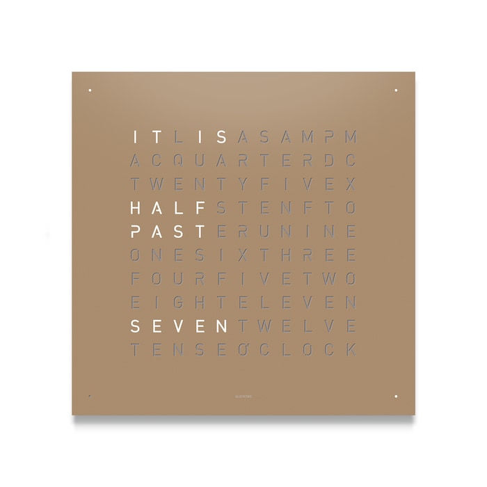 The QLOCKTWO® CLASSIC Steel Wall Clocks 45 x 45 cm makes you stop and look at time in a different way.The typographic font combines the moment with the written word and makes a statement: “IT IS QUARTER PAST SEVEN.” The words change in five minute increments, with four small illuminated corner points displaying the minutes in between. QLOCKTWO CLASSIC appears to float elegantly when wall mounted and if the power connection is visible a coloured textile cable can be added for an additional design element.The front cover, is held in place by magnets, making it easily changed at any time. Sensors adjust the light automatically to ambient light conditions so that even at night the clock can be easily read. Also, there is an option for manual brightness adjustment. QLOCKTWO CLASSIC is available in more than 20 languages.FEATURESILLUMINATION -Sensors adjust the light automatically to ambient light conditions so that even at night the clock can be easily read. The brightness can also be adjusted manually.SECONDS MODE -When the seconds mode is activated – using the two buttons at the back of the clock – the seconds are displayed as large figures on the front matrix. In seconds mode the minute points in the corners are still viable.FLASHSETTER APP -With the QLOCKTWO FLASHSETTER App it is even easier to set your QLOCKTWO.Simple download from your smartphone web store. Alternatively, the time can also be set manually.EASY TO READ -QLOCKTWO displays time typographically in combination with four illuminated points. The words on the clock face change every five minutes. In each corner, illuminated points represent the minutes in between. The introductory words “IT IS“ can be switched on and off. In the selectable „purist mode“, „IT IS“ is only displayed every half and full hour. Example: 7.18 amEASY TO OPERATE -The four buttons to set the QLOCKTWO CLASSIC are positioned at the back of the clock. All the above mentioned functions can be selected using these buttons.INSTALLATION -The QLOCKTWO can be set up in three different ways. A freestanding setup as well as a wall-mounted setup with visible or non-visible power supply are available. All components needed for any of the 3 options are included in the package.WALL MOUNT VERSION WITH VISIBLE CABLE -High-quality textile cable with coloured fabric cable sheath, length 3.5 m. Ideal for wall-mounting the QLOCKTWO CLASSIC without 220 V direct power outlet from the wall. Stages the visible power supply as a design element. Alternative colorfultextile cable QABLE (available as accessories in various colours).ALL MOUNT VERSION -QLOCKTWO appears to float elegantly when mounted. The wall bracket provides plenty of space to hide the cables and the power supply.FREESTANDING -The unobtrusive and nearly invisible base for almost every QLOCKTWO CLASSIC made of matt semi-transparent acrylic glass.AWARD WINNING DESIGN -Since its launch, the QLOCKTWO family has received more than 30 international awards including the Red Dot Design Award, the iF Product Design Award and the ADC Europe’s Gold Award.