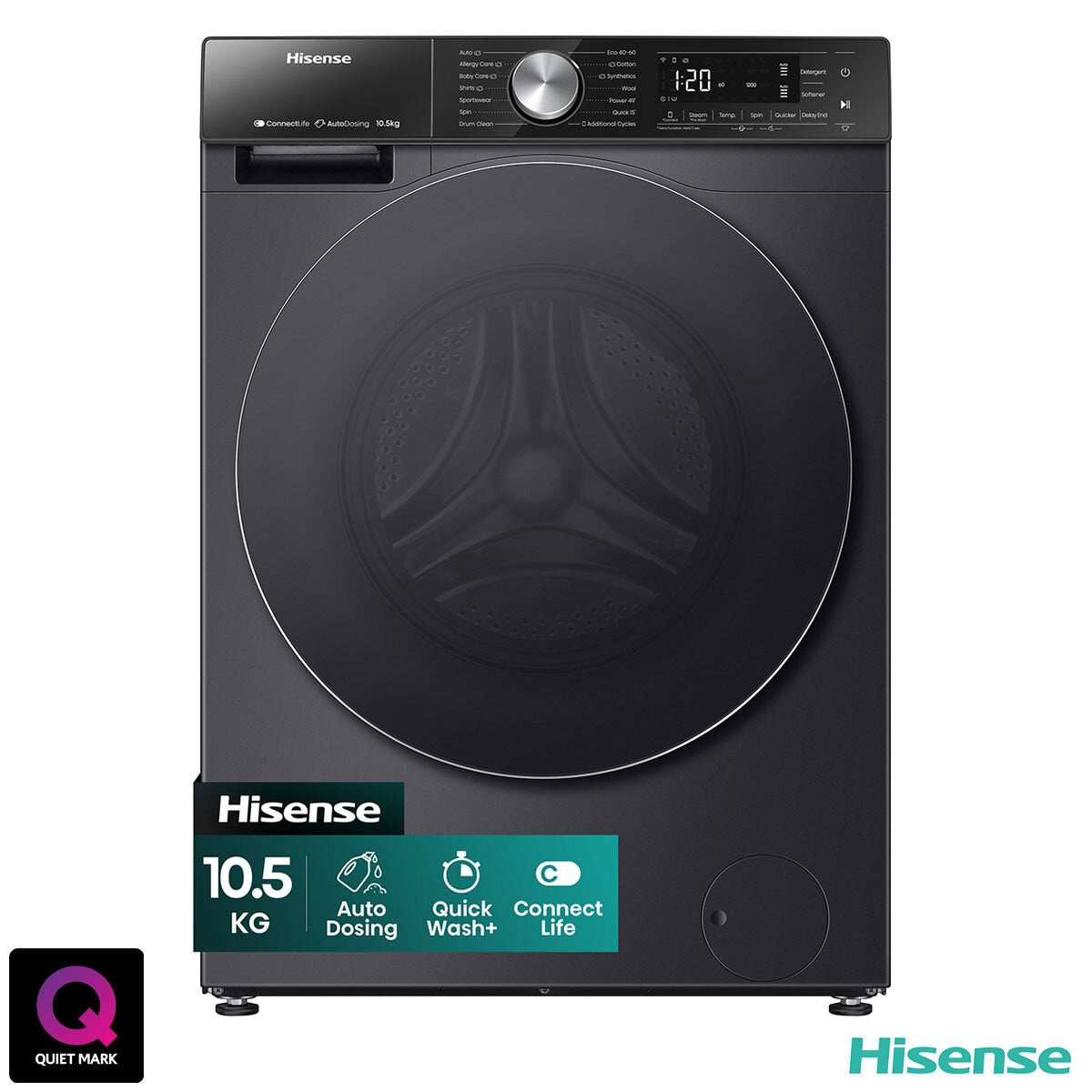 Hisense WF5S1045BB, 10.5kg 1400rpm Washing Machine, A Rated in Black