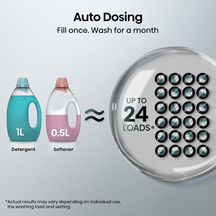 A-Class Efficiency! As well as keeping your clothes spotlessly clean, this A-Class Energy Rated washing machine helps to minimise energy consumption, helping you save on your utility bills. Auto Dosing Your washing machine will automatically choose the precise detergent or softener dosage according to the weight of clothes. Better still, this machine can store up to 24 loads at one time - about a month without adding it again*. Precise water & detergent Automatically senses the weight during the wash cycle and adds the proper amount of water and detergent, cleaning your clothes optimally and efficiently. Stay sterile laundry This product can remove bacteria through drum clean* and soapbox clean, and the Pure Jet function can wash away the stains on the door and bellow. The bellow here is also made of sterile material. Steam Wash The high-temperature steam is released from the bottom of the drum, and the steam fully penetrates the clothes, which can eliminate 99.9%* of Escherichia coli and Staphylococcus aureus attached to the clothes. ConnectLife feat. Energy Smart ConnectLife app help to analyse cumulative water/electricity savings and how much money you save based on user data, advising you better laundry arrangement. Smart connect, easy dry The washing machine duplicates washing program to the dryer*, which automatically choose drying programs by itself, greatly saving your time from additional operation. ConnectLife feat. Smart Wizard By choosing the fabrics type, colour, dirt level and any specific stains, the washing machine will wash your clothes with a perfect combination of the right temperature, time, and water. Your clothes will always be in top shape. Quick Wash+ Designed for your busy life, Hisense washing machines not only cut your laundry time and cost, but also provides you with multiple fast washing programs to meet your personalised needs. You can choose either a 15 min or 49 min programs which are perfectly prepared for either 1 kg or half load of laundry. EAN: 6901101828699