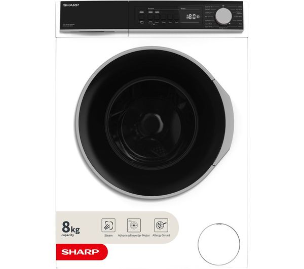 SHARP ES-NFB814AWNA-EN 8 kg 1400 Spin Washing Machine - White, Capacity: 8 kg, Spin speed: 1400 rpm, Quick wash time: 15 minutes for 2 kg, Energy rating: A, Steam cycle refreshes your laundry, Anti-allergy program removes bacteria & other allergens, 2 year guarantee
