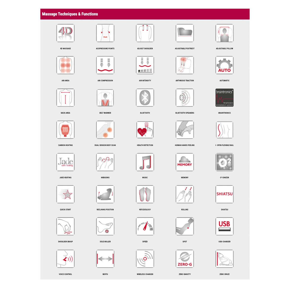 Skyliner III massage chair is compatible with the braintronics® app, which uses audio stimulation to synchronize the brain waves and thus cause different relaxation states. Connected via Bluetooth, the massages of the Skyliner II work with braintronics® in harmony, which increases the positive effect on your body and mind and gives a calming effect.