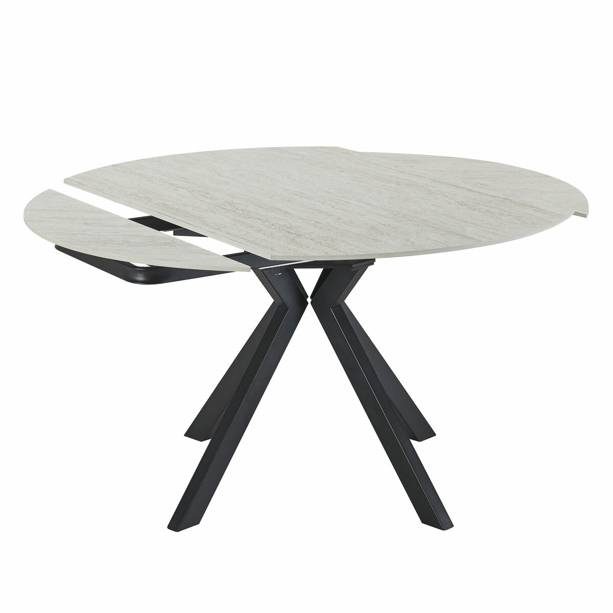 Bring timeless elegance to your dining area with this stunning extending Cavella dining table. Featuring a smooth, natural ceramic top, this table offers the luxurious look of stone with the durability and easy care of ceramic. Perfect for contemporary homes—paired with 4 matching chairs for a complete look.