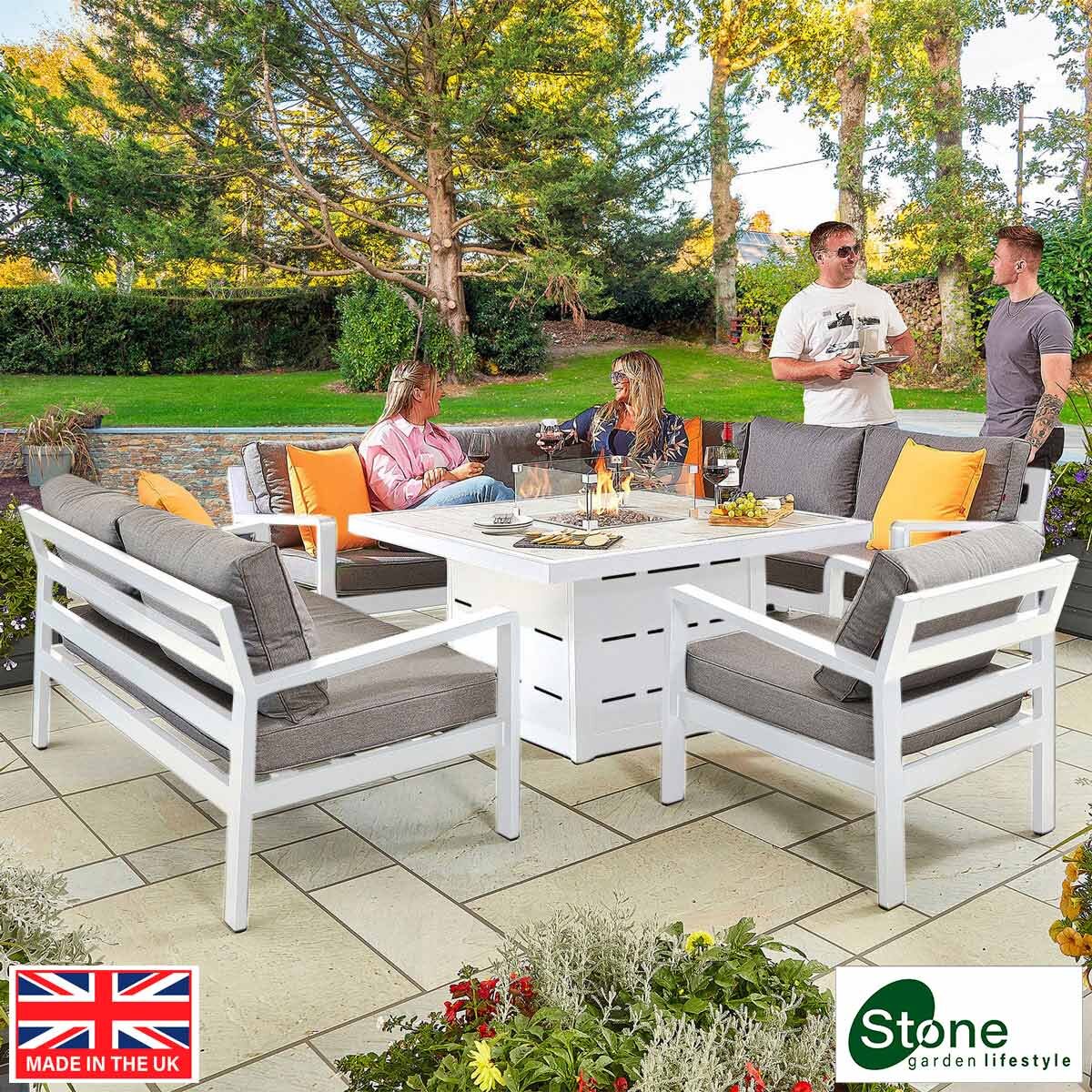 Whether you want somewhere to lounge and relax or dine and entertain guests, this Stone Garden Fire Patio set quite simply offers it all. Including a large five-seater corner sofa, a two-seater sofa and an armchair, this set can accommodate up to eight people. The fabulous firepit table provides ample room for eating whilst providing warmth on cooler days or summers evenings.