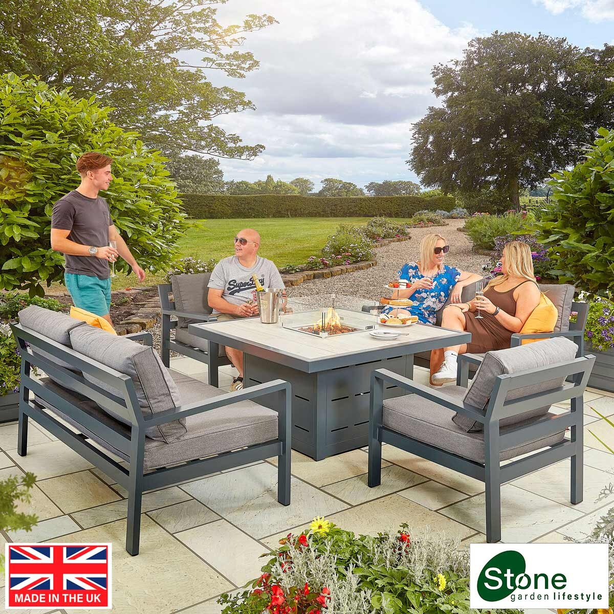 With plenty of room to accommodate friends and family, this outdoor furniture set is a great addition to the home. Comprising of two large, two-seater sofas and two comfortable armchairs, set around the stylish firepit table, you can be assured the entertaining doesn’t have to stop when the weather cools.