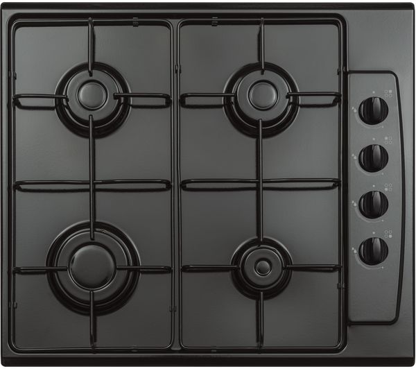 ESSENTIALS CGHOBB21 58 cm Gas Hob - Black, 4 x 58 x 51 cm (H x W x D), 4 burners, Enamel pan supports, Automatic ignition, Side-mounted controls
