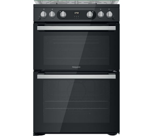 HOTPOINT HDM67G0C2CB 60 cm Gas Cooker - Black, 90 x 60 x 60 cm (H x W x D), Two gas ovens / Integrated gas grills, 4-burner gas hob / wok burner, Main oven cleaning: Assisted cleaning, Large capacity oven